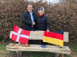 Kirsten Jakob aus Niedermittlau von der „deutsch-dänischen Abordnung des TVN“ hat anlässlich des 50 jährigen Bestehens dieser Freundschaft eine Sitzbank mit herrlichem Blick auf den Bergkopp gespendet und auch hier wurde die Bank würdig vor zahlreichen Nordic Walkern und Gästen eingeweiht.
